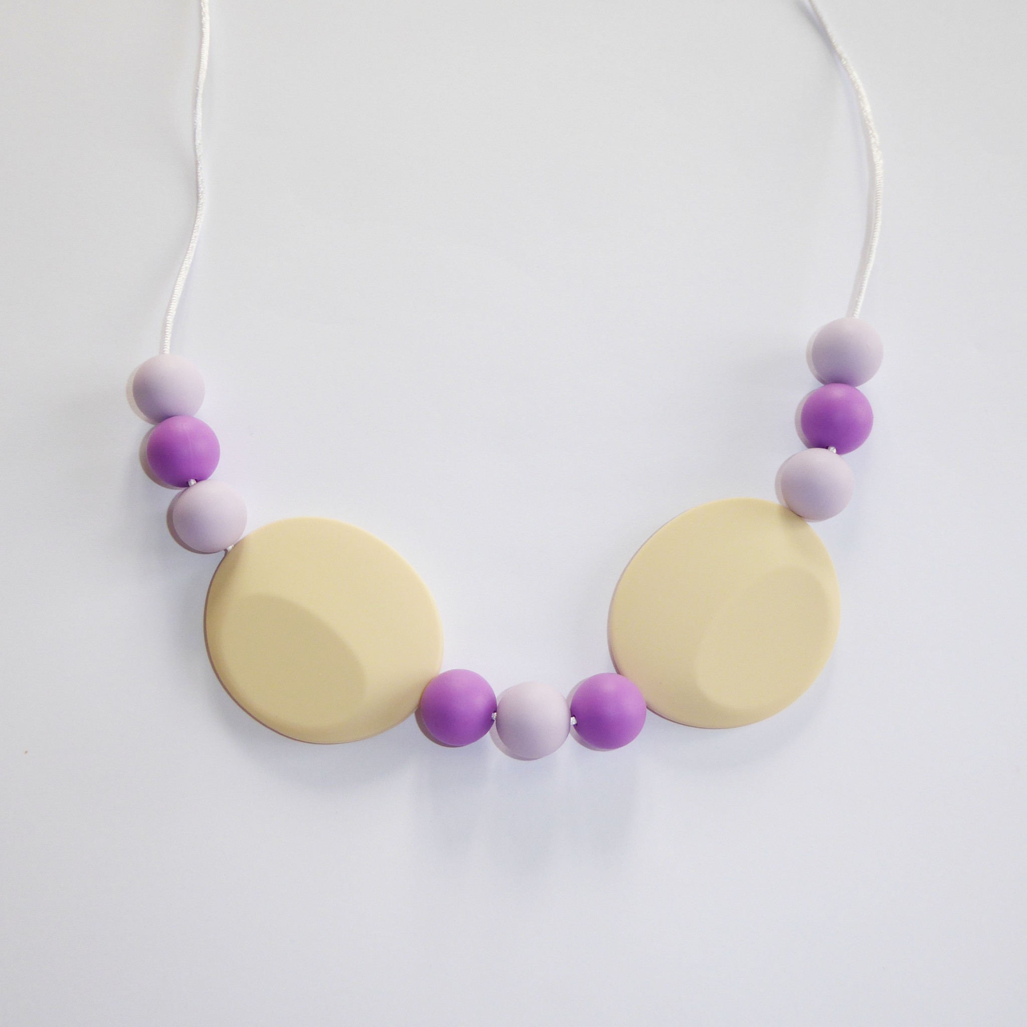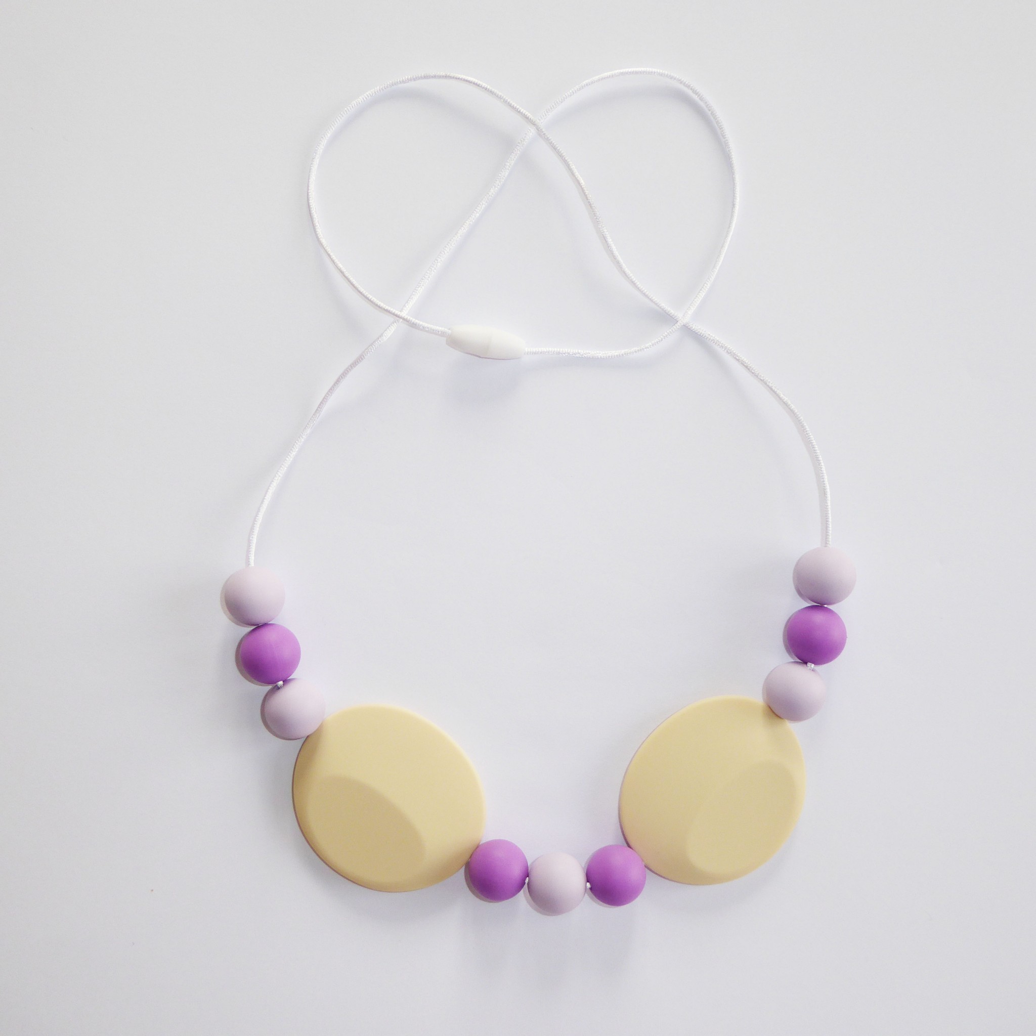Ce collier permet des stimulations sensorielles orales, tactiles et visuelles de par ses textures, ses formes, ses couleurs.