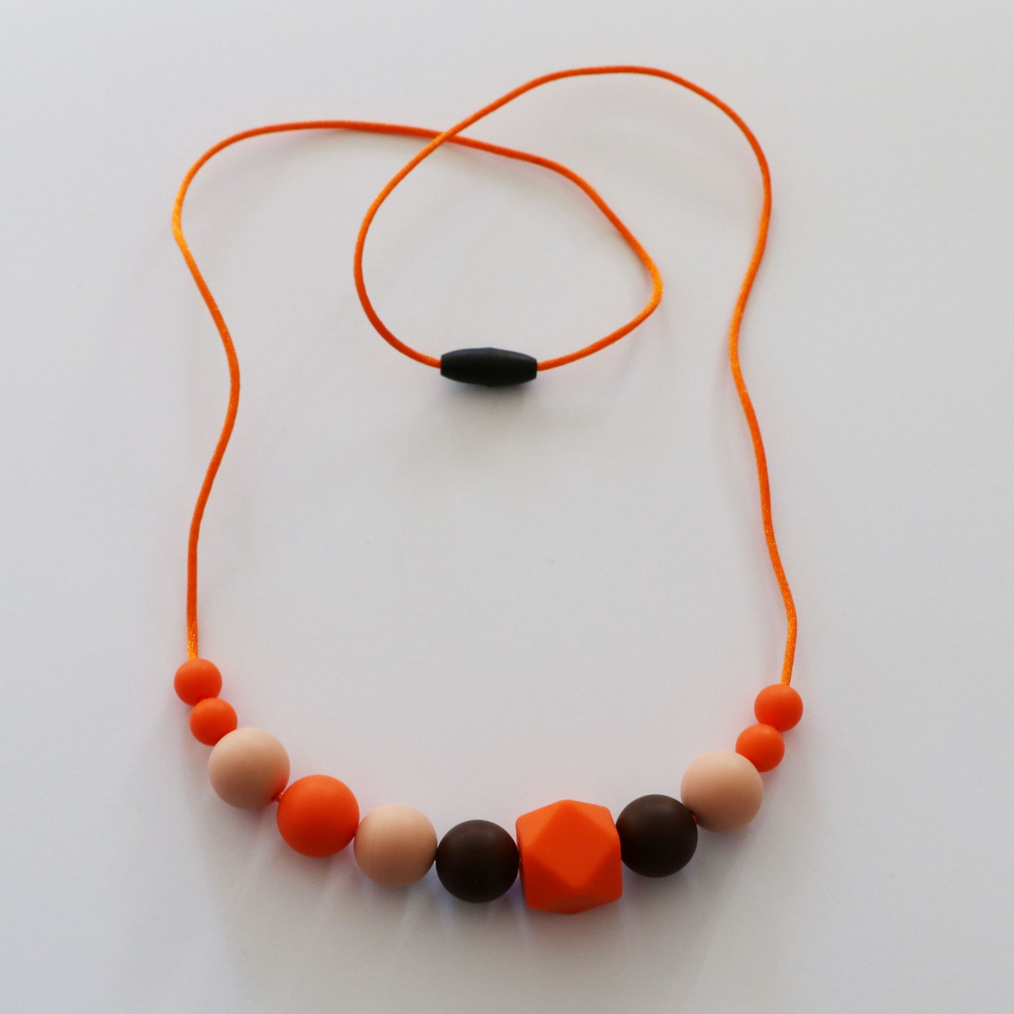 Ce collier permet des stimulations sensorielles orales, tactiles et visuelles de par ses textures, ses formes, ses couleurs.