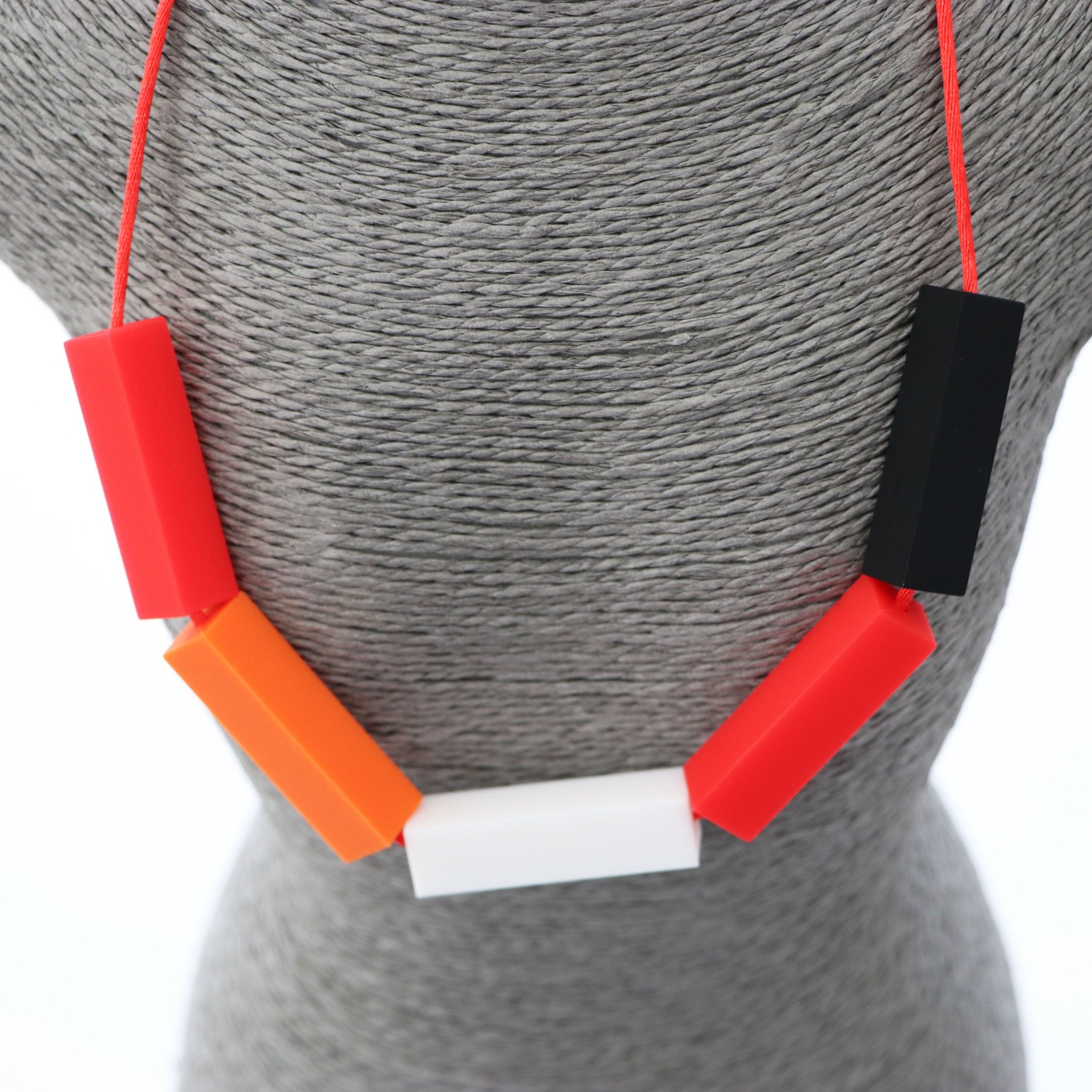 Ce collier permet des stimulations sensorielles orales, tactiles et visuelles de par ses textures, ses formes, ses couleurs.