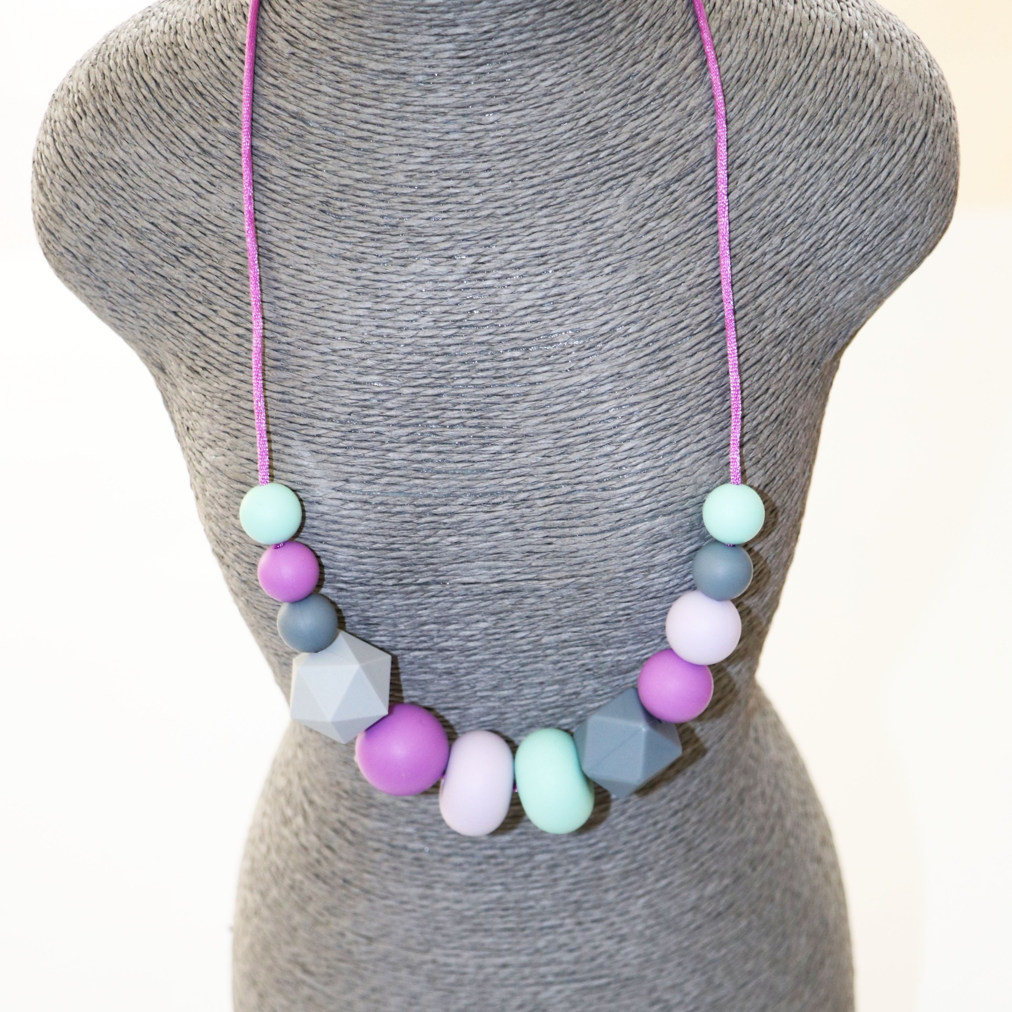 Ce collier permet des stimulations sensorielles orales, tactiles et visuelles de par ses textures, ses formes, ses couleurs.