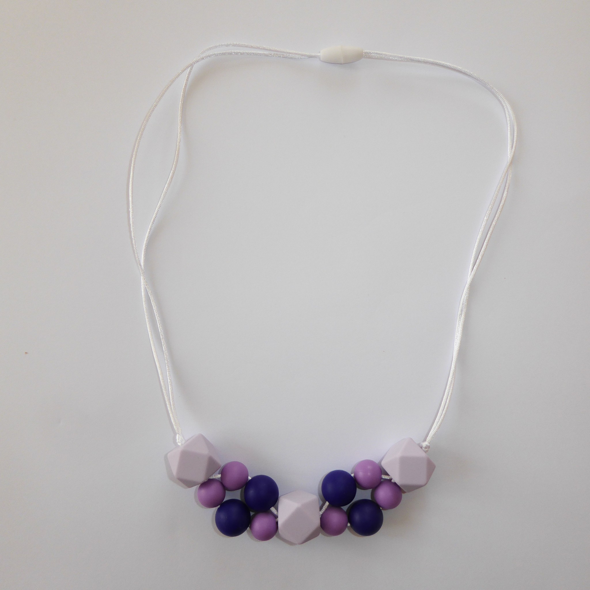 Ce collier permet des stimulations sensorielles orales, tactiles et visuelles de par ses textures, ses formes, ses couleurs.