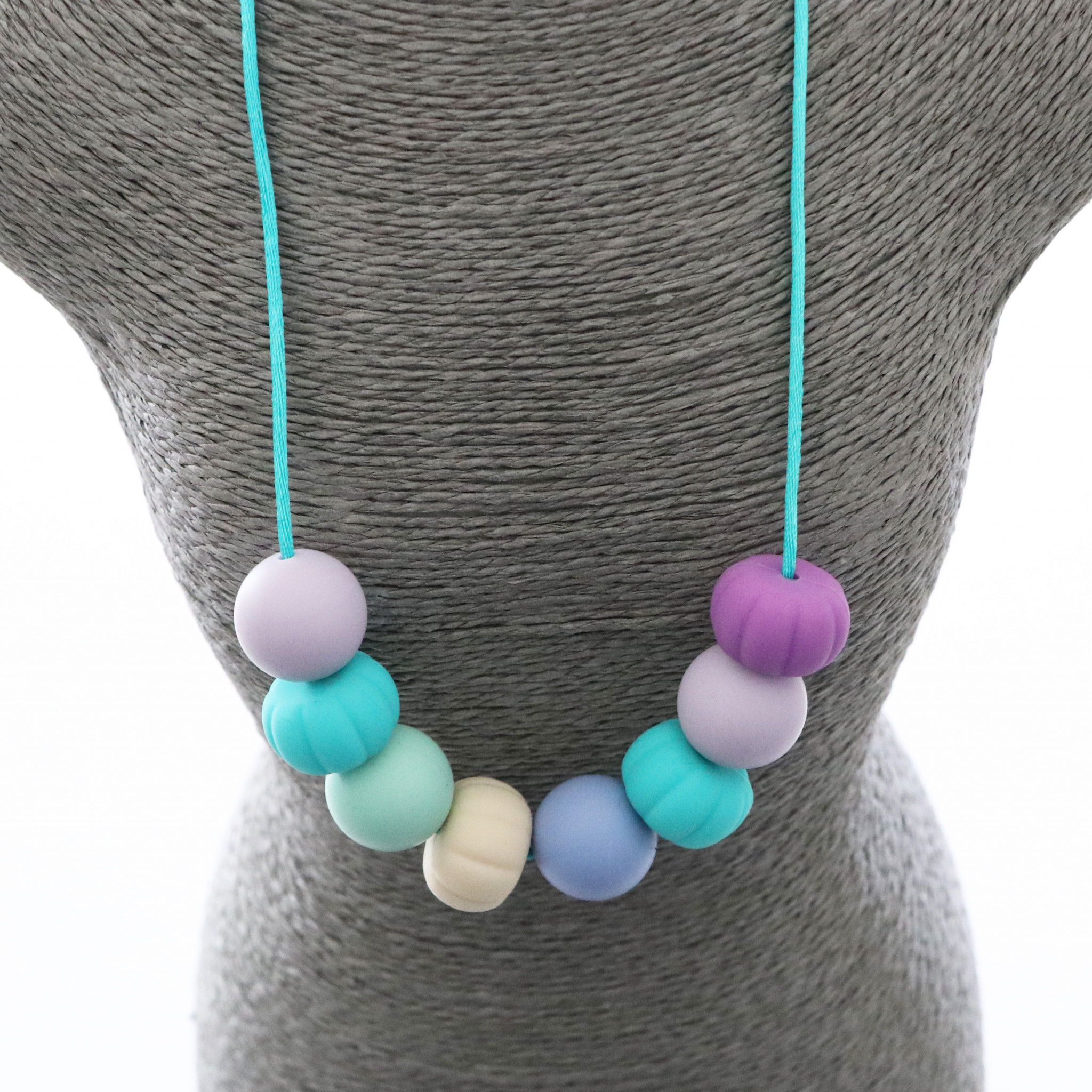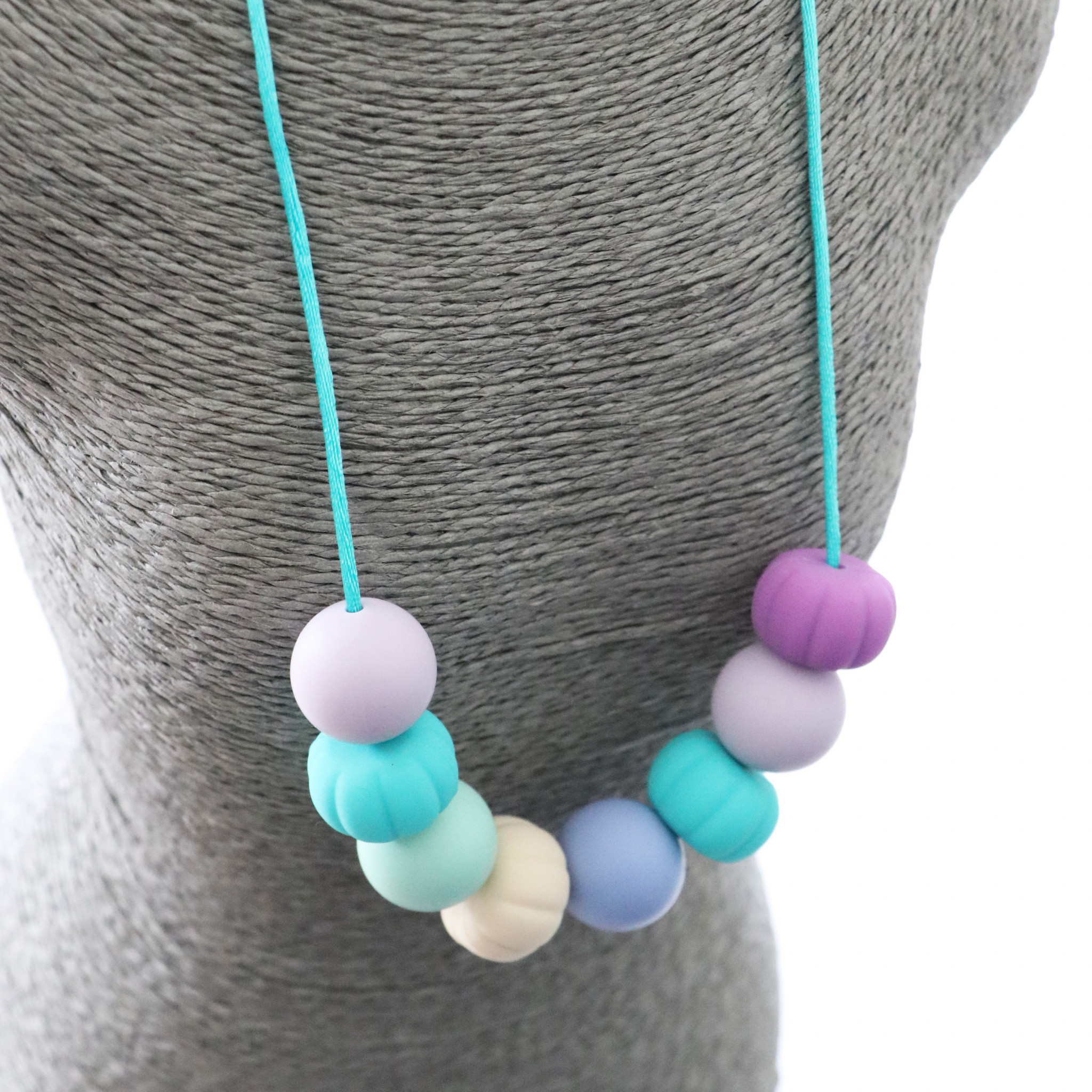 Ce collier permet des stimulations sensorielles orales, tactiles et visuelles de par ses textures, ses formes, ses couleurs.