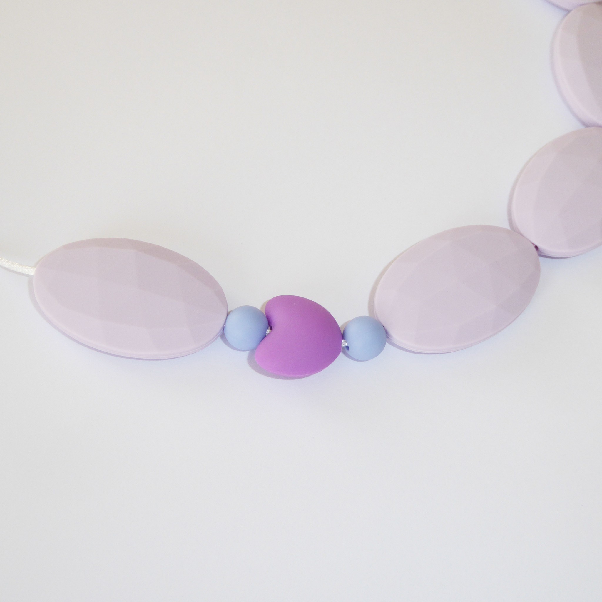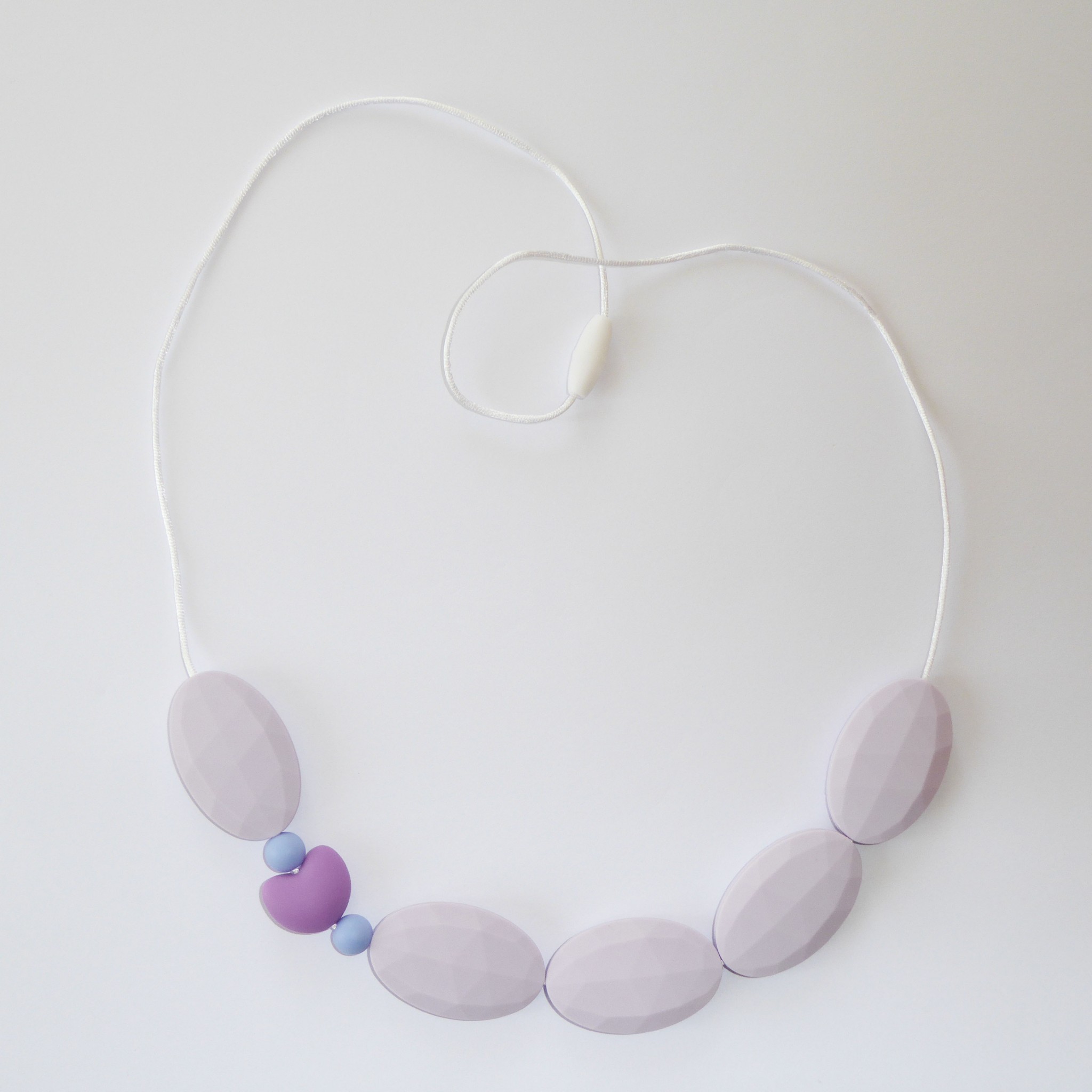 Ce collier permet des stimulations sensorielles orales, tactiles et visuelles de par ses textures, ses formes, ses couleurs.