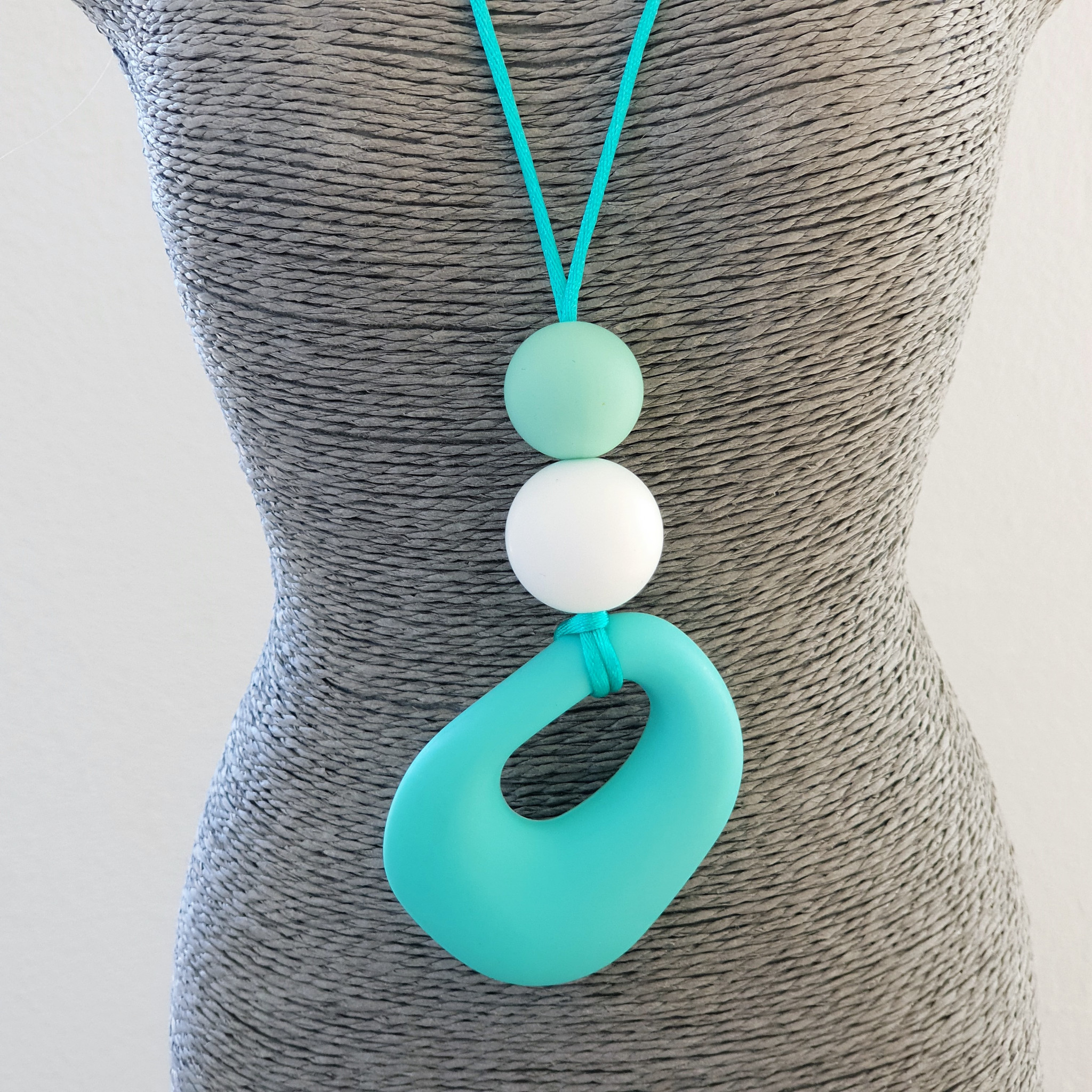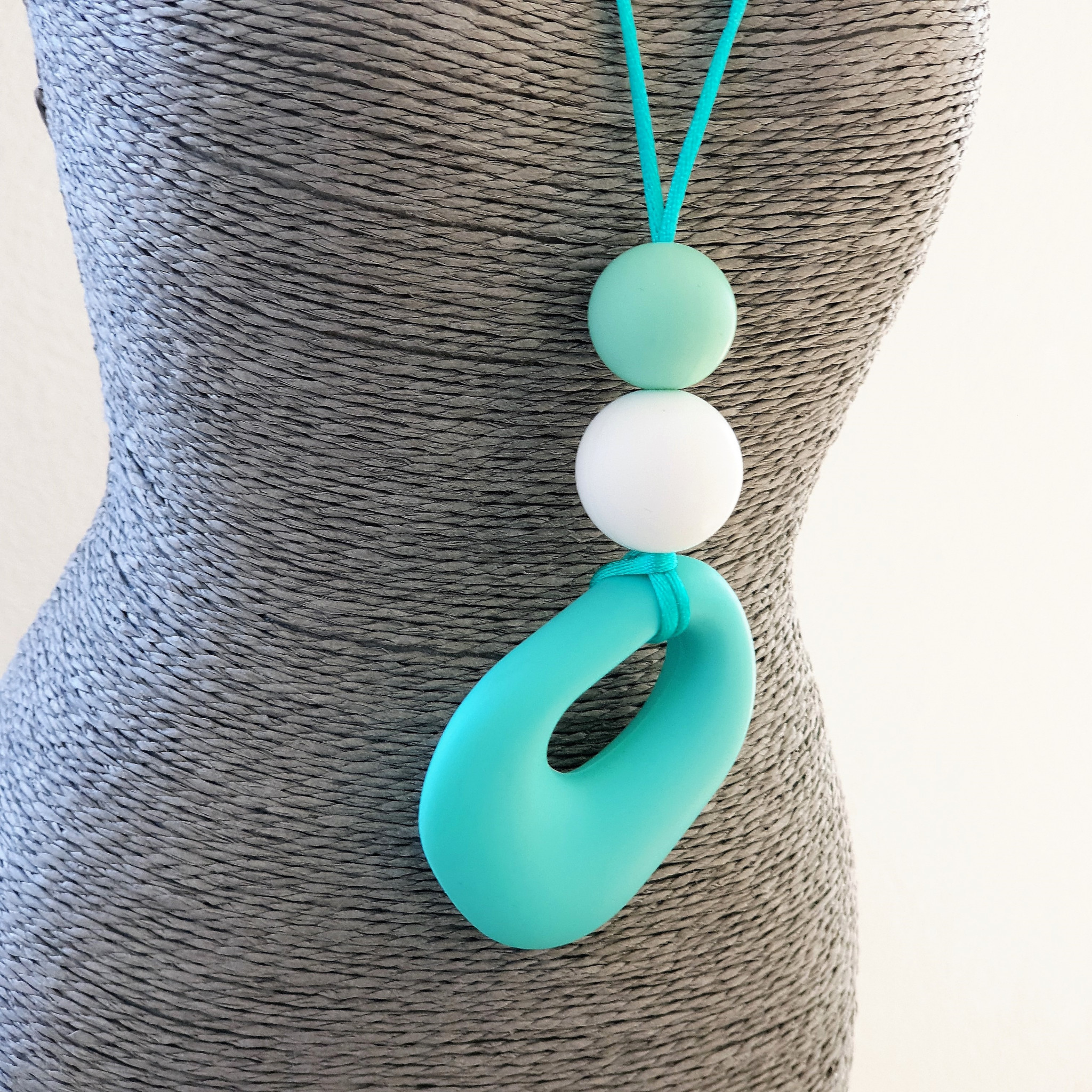 Ce collier permet des stimulations sensorielles orales, tactiles et visuelles de par ses textures, ses formes, ses couleurs.