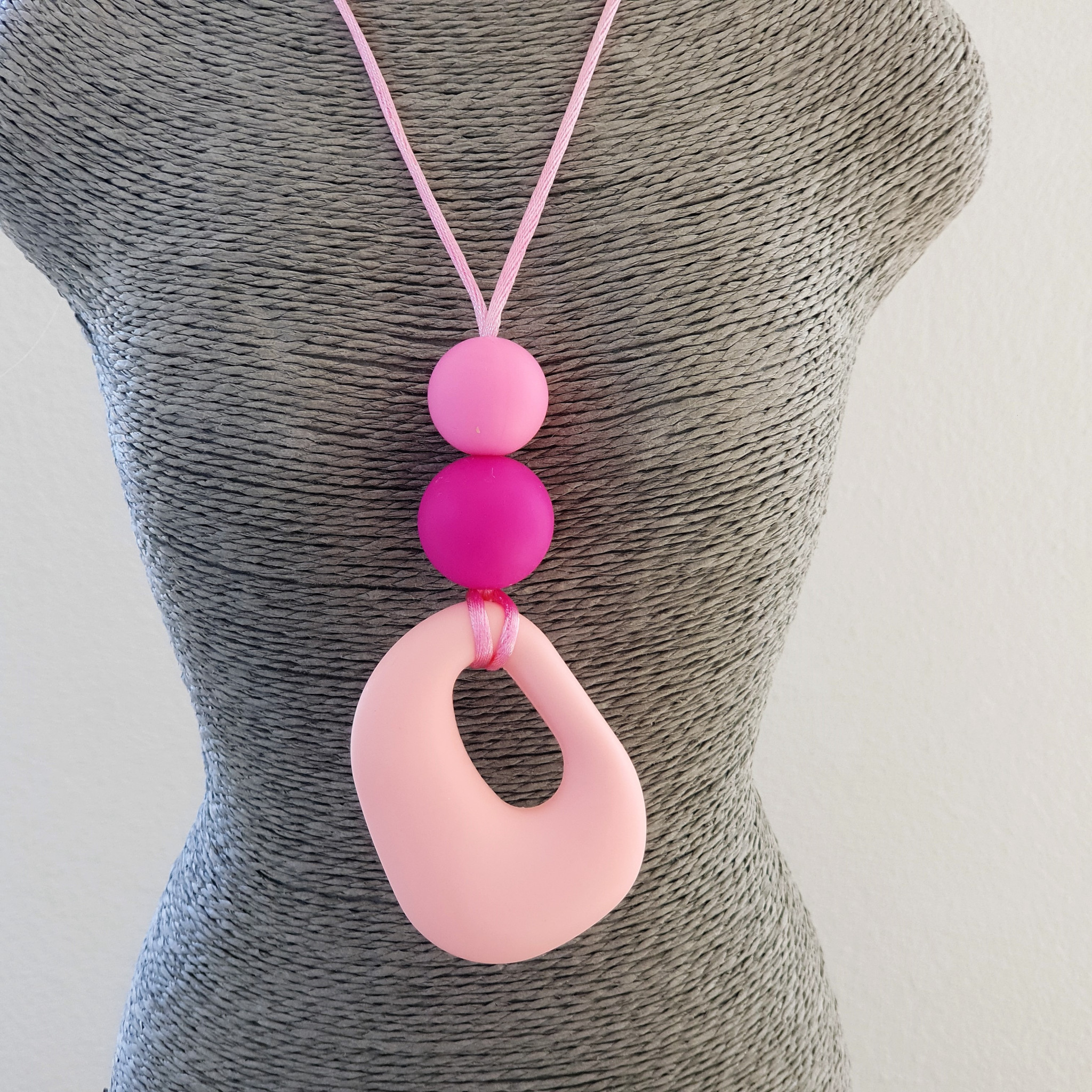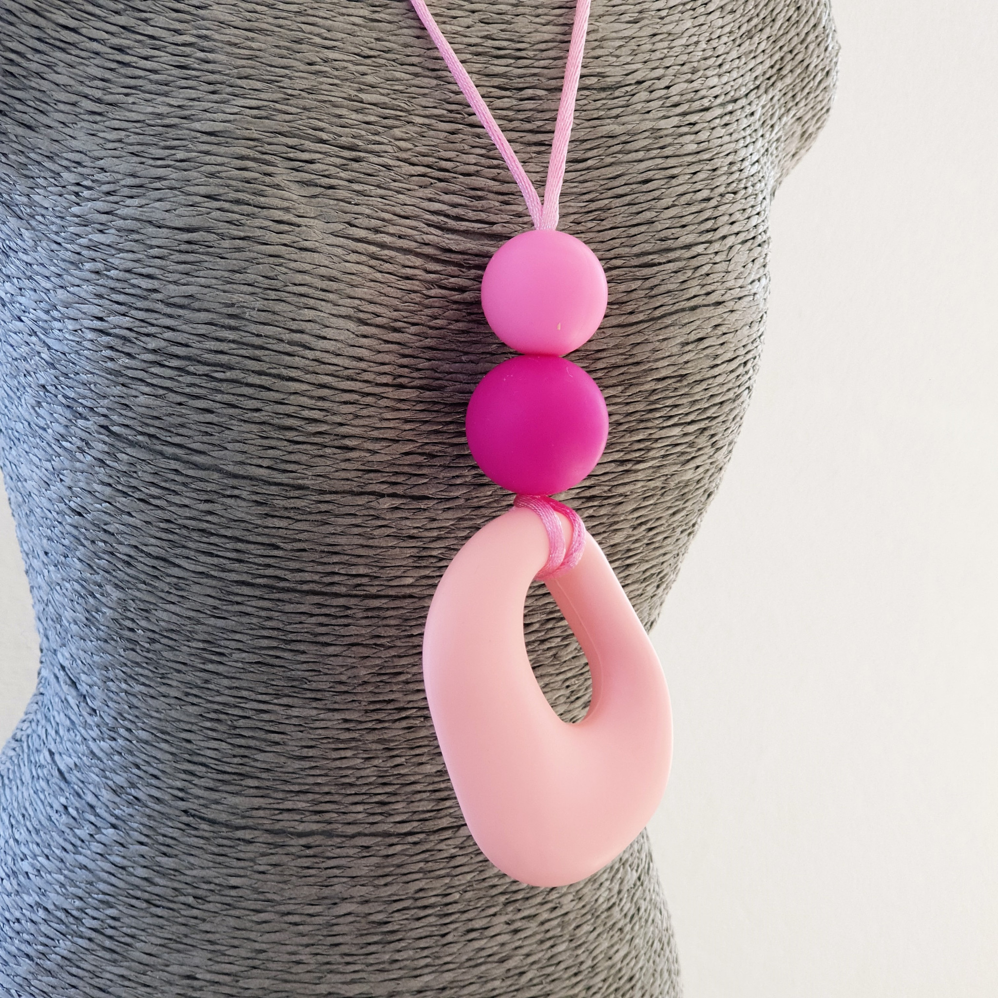 Ce collier permet des stimulations sensorielles orales, tactiles et visuelles de par ses textures, ses formes, ses couleurs.