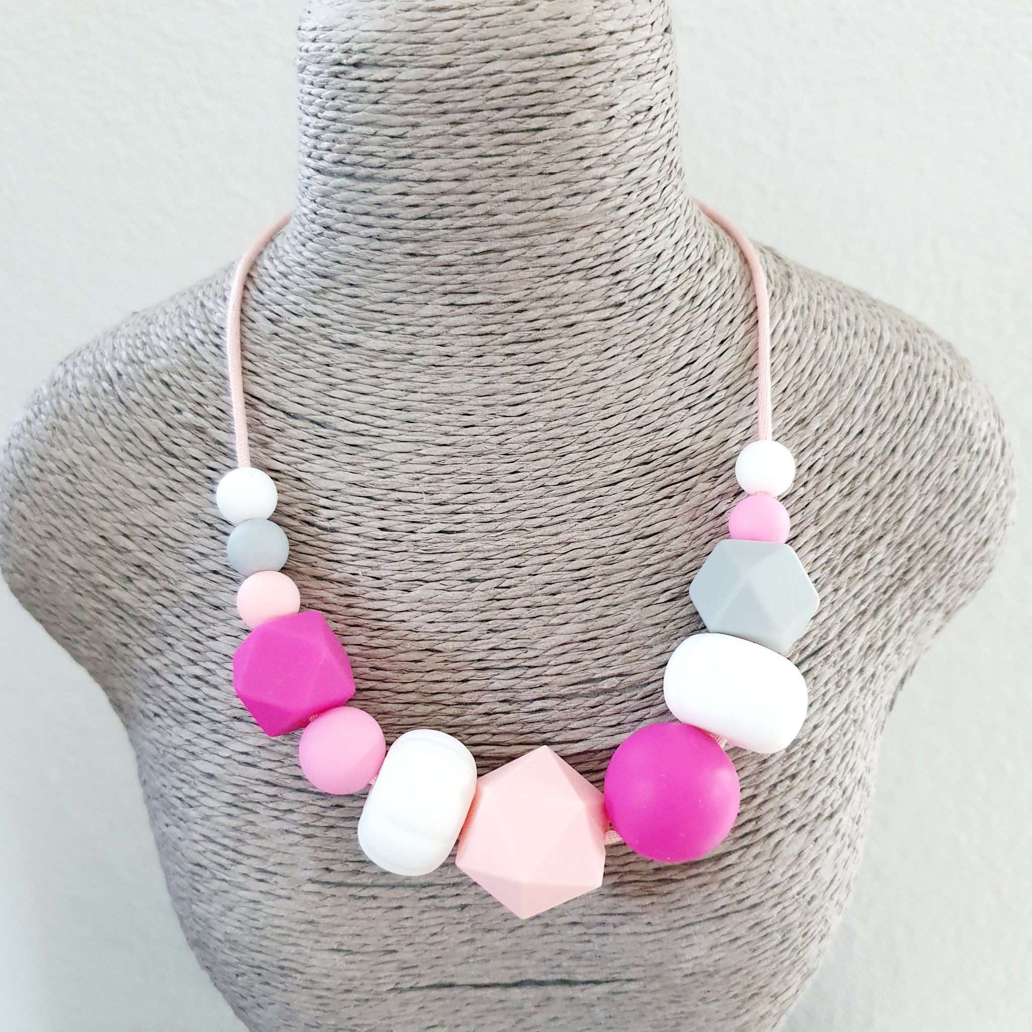 Ce collier permet des stimulations sensorielles orales, tactiles et visuelles de par ses textures, ses formes, ses couleurs.
