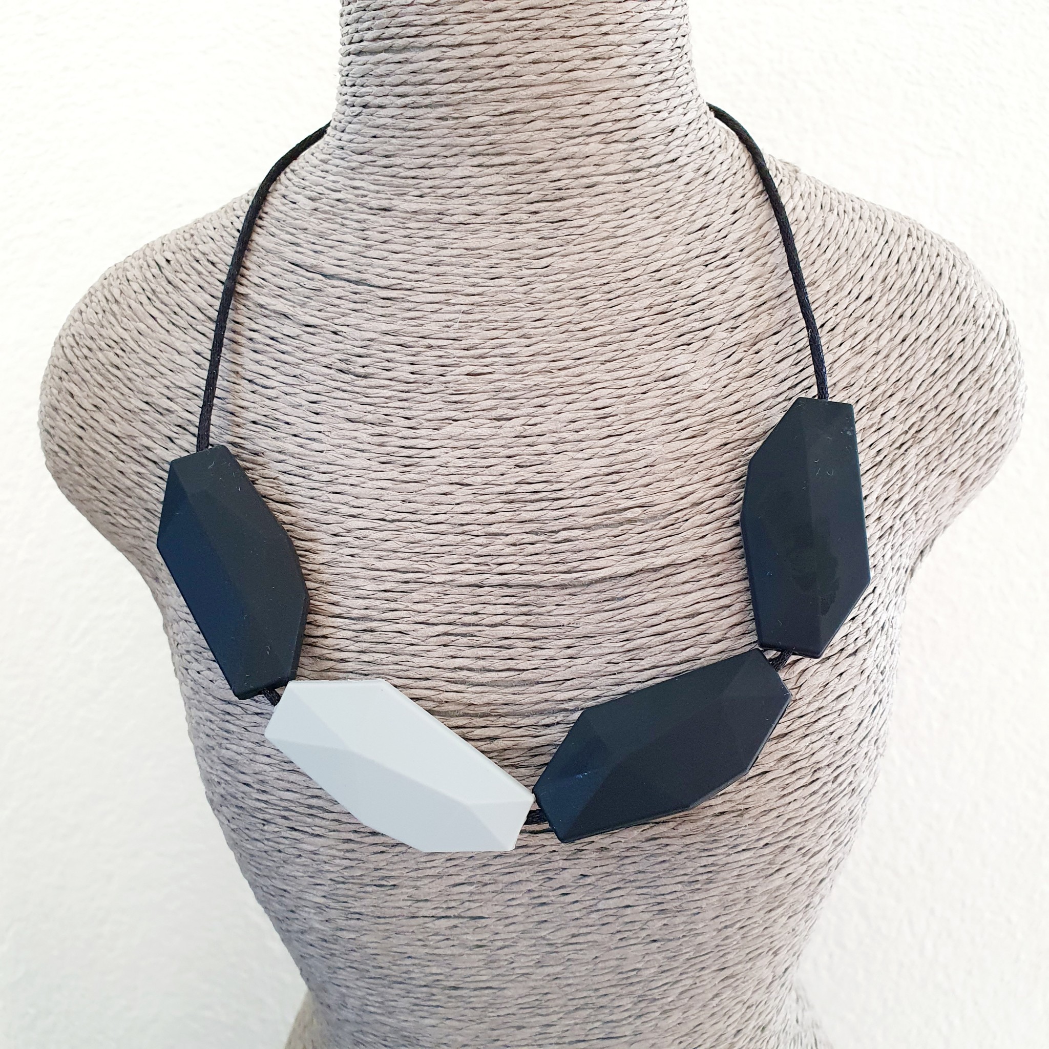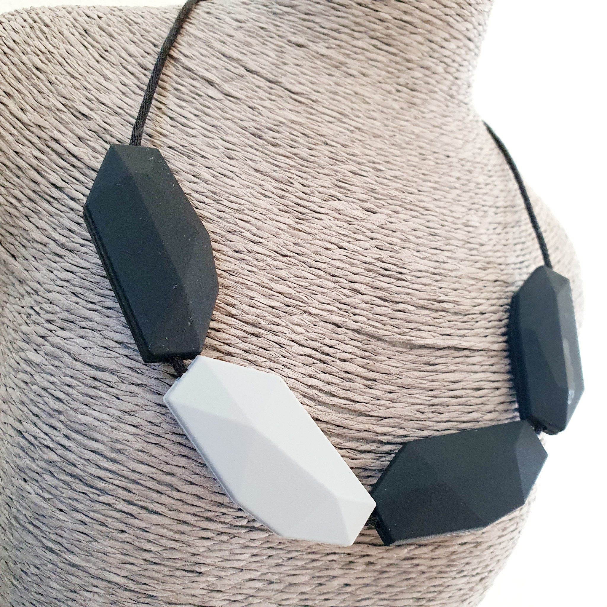 Ce collier permet des stimulations sensorielles orales, tactiles et visuelles de par ses textures, ses formes, ses couleurs.