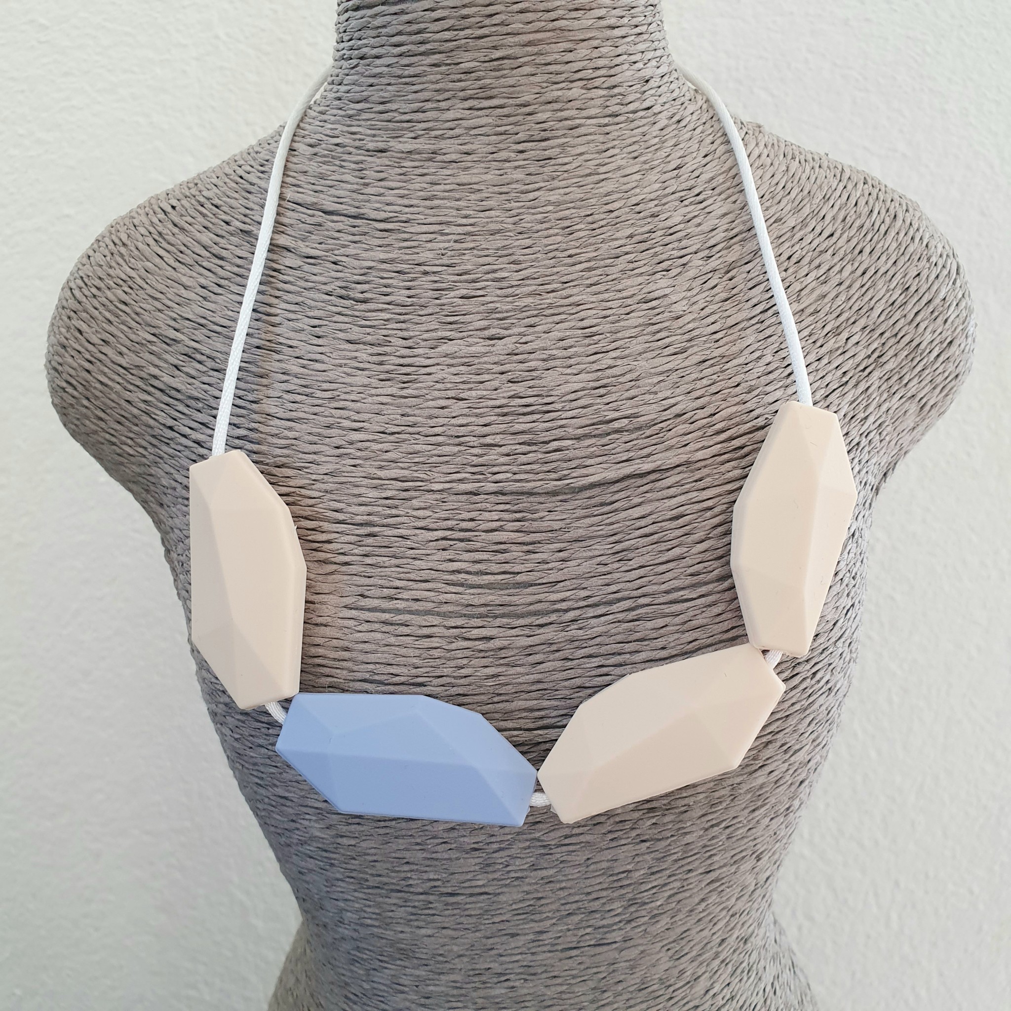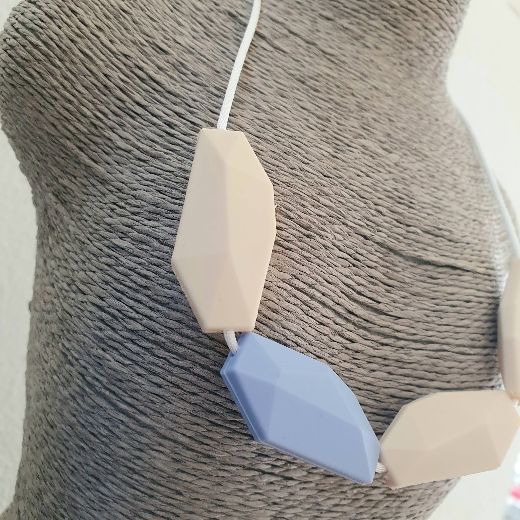 Ce collier permet des stimulations sensorielles orales, tactiles et visuelles de par ses textures, ses formes, ses couleurs.