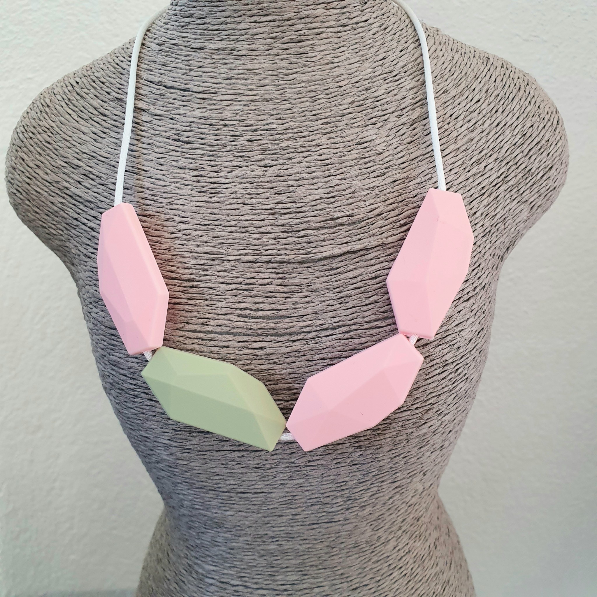 Ce collier permet des stimulations sensorielles orales, tactiles et visuelles de par ses textures, ses formes, ses couleurs.