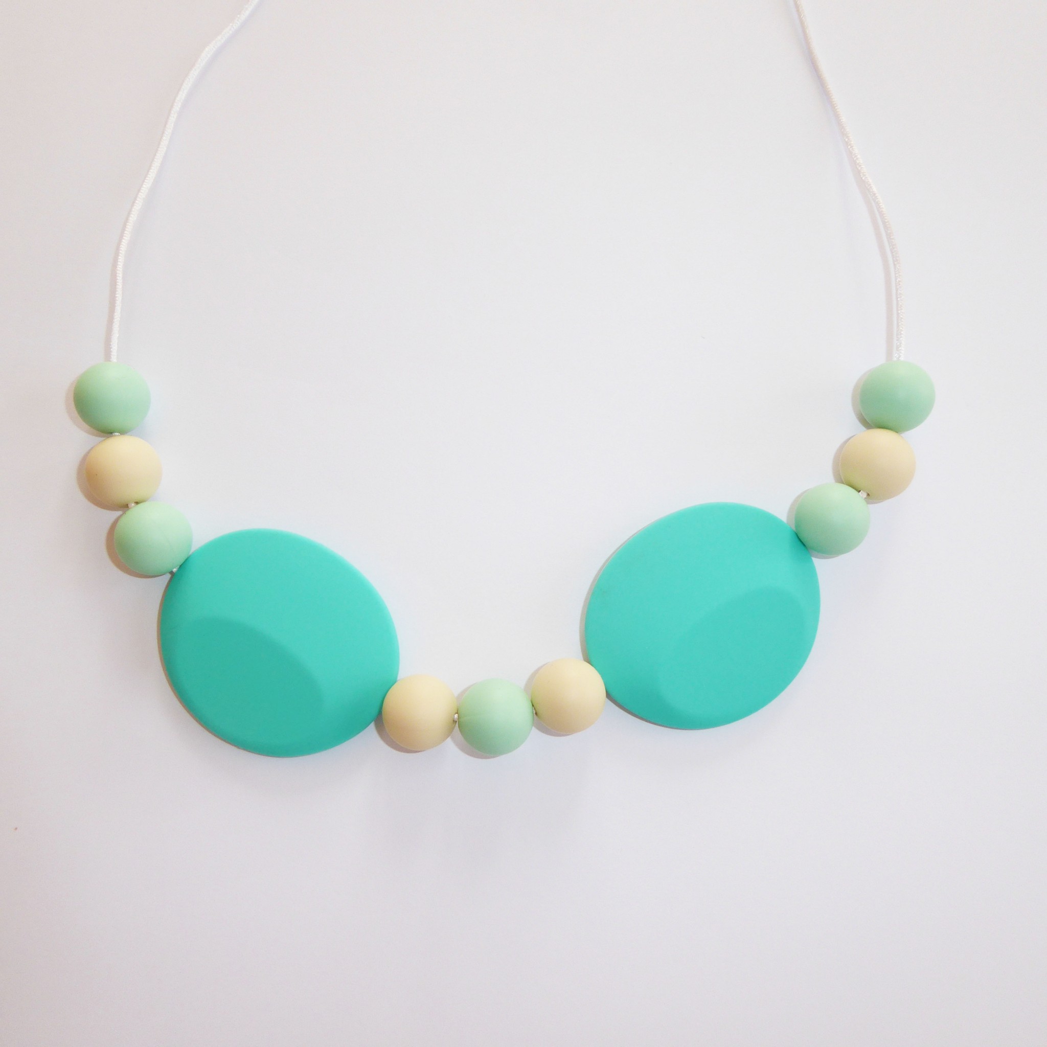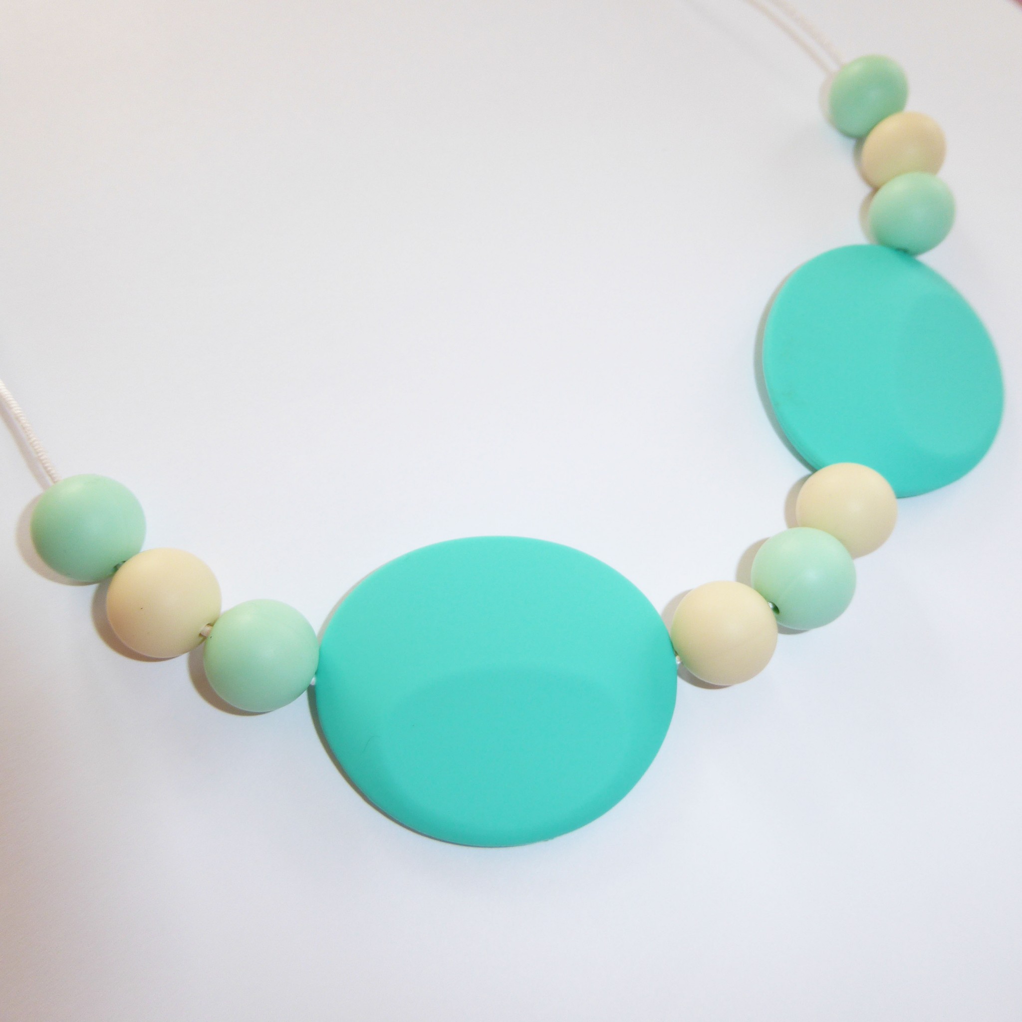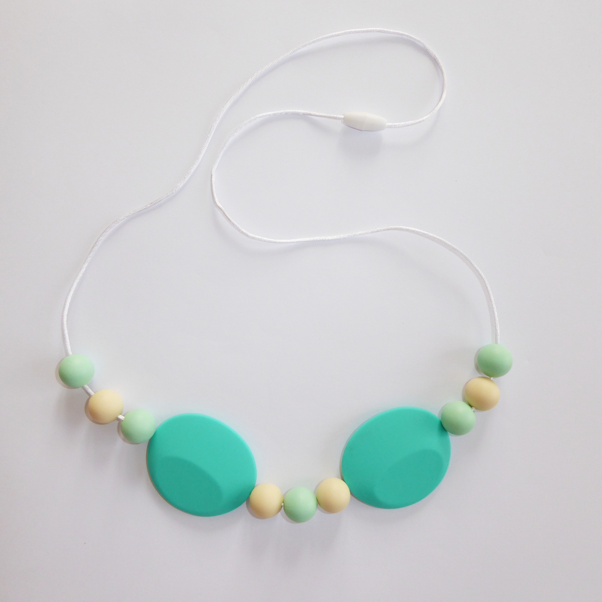 Ce collier permet des stimulations sensorielles orales, tactiles et visuelles de par ses textures, ses formes, ses couleurs.